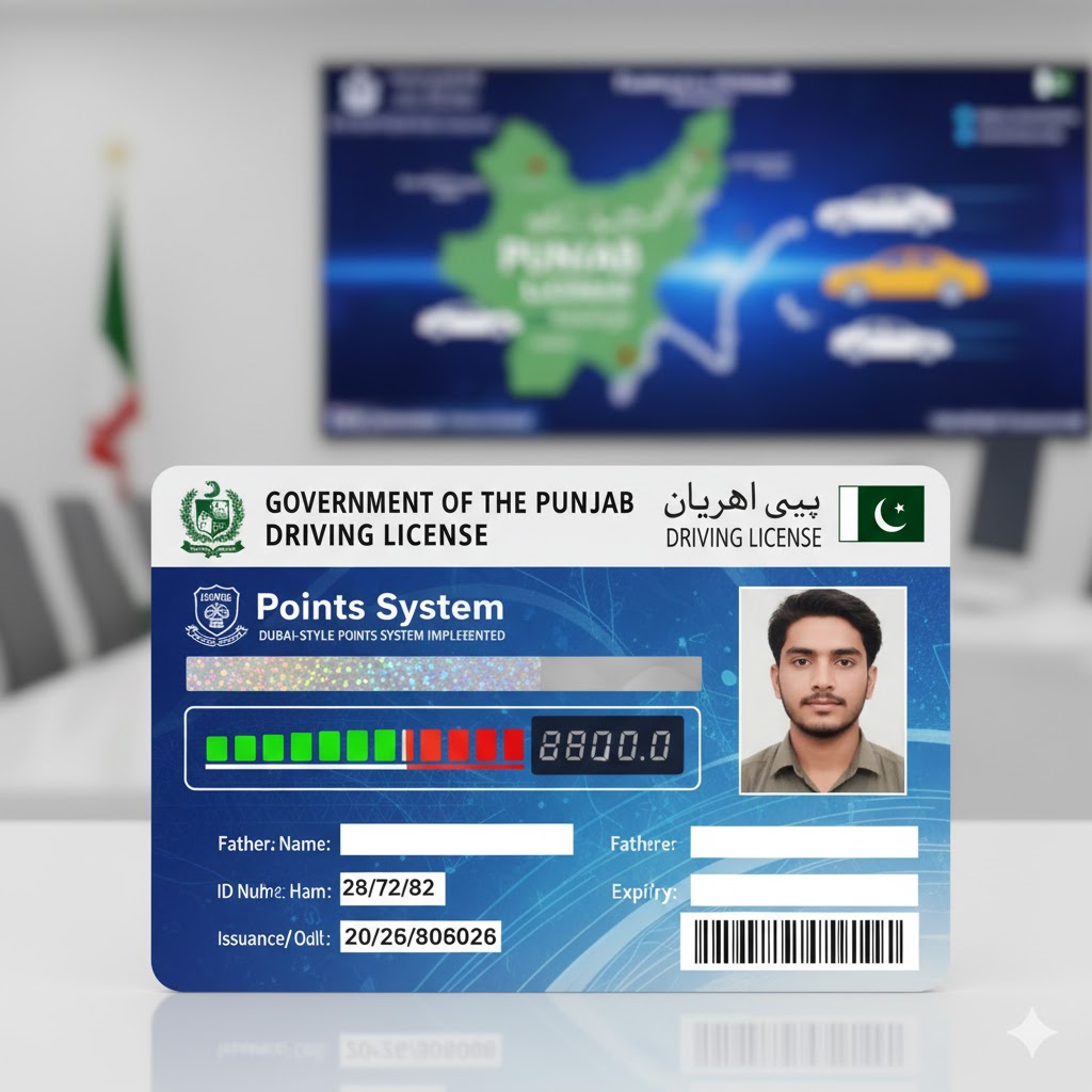 The Punjab government has introduced a modern Dubai-style driving license points system to control traffic violations and improve road safety. The system assigns points for each traffic offense, coupled with monetary fines. Minor violations will result in 2 points, while more serious offenses could cost up to 4 points.