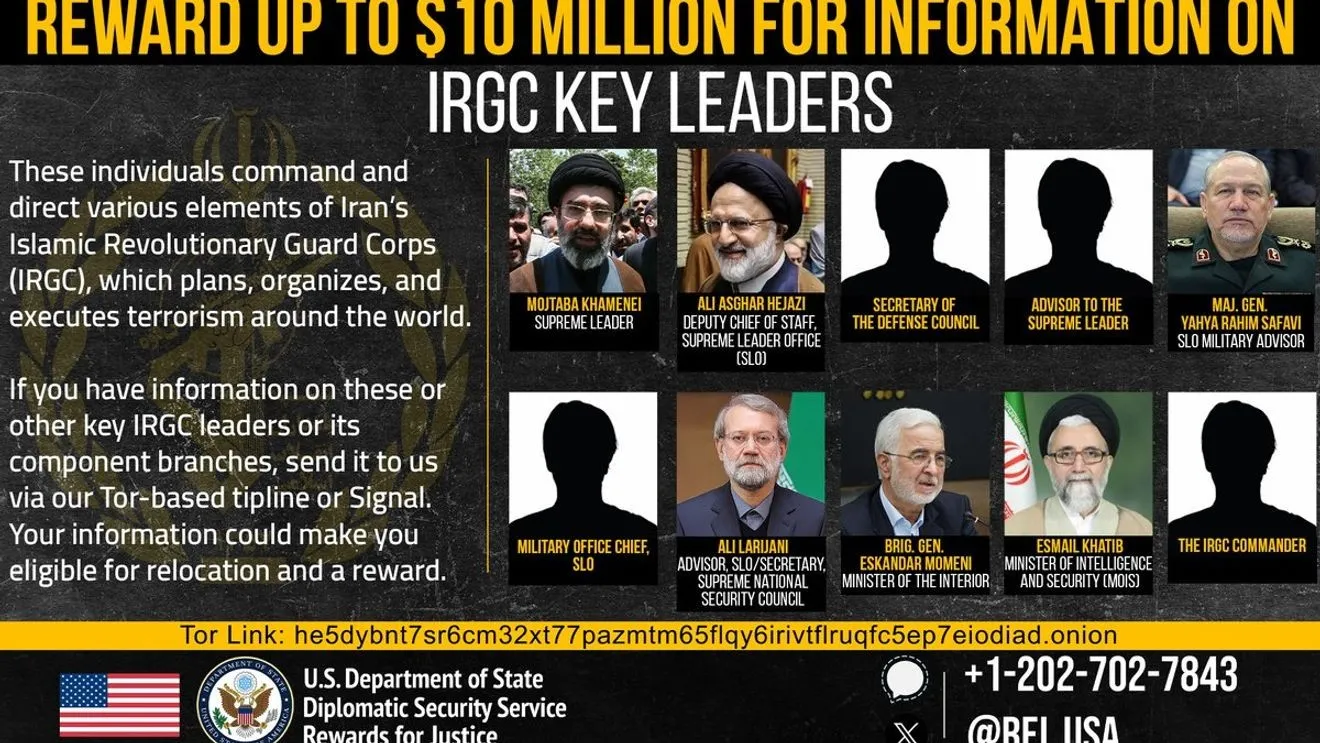 The United States has announced a reward of up to $10 million for information about senior Iranian military and intelligence officials, including Iran’s new Supreme Leader Mojtaba Khamenei. The offer was published on the website of the United States Department of State, as part of Washington’s efforts to gather intelligence on key figures associated with Iran’s powerful security institutions.