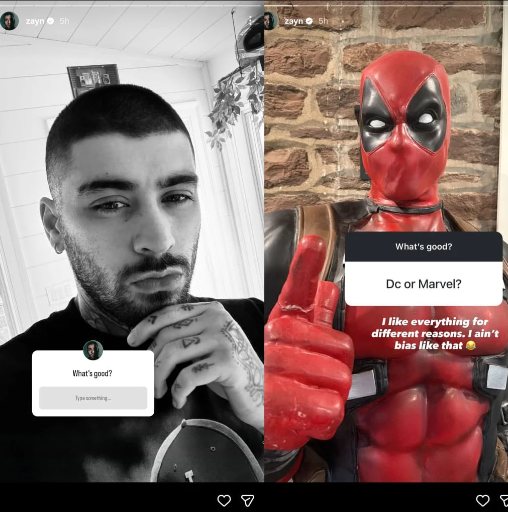 While Zayn Malik stopped short of choosing sides in the DC vs. Marvel debate, his engagement with fans highlights his genuine love for comic books and superhero culture. From Deadpool to Iron Man and beyond, the singer remains an enthusiastic and relatable fan, proving that even global pop stars can geek out over their favourite heroes.